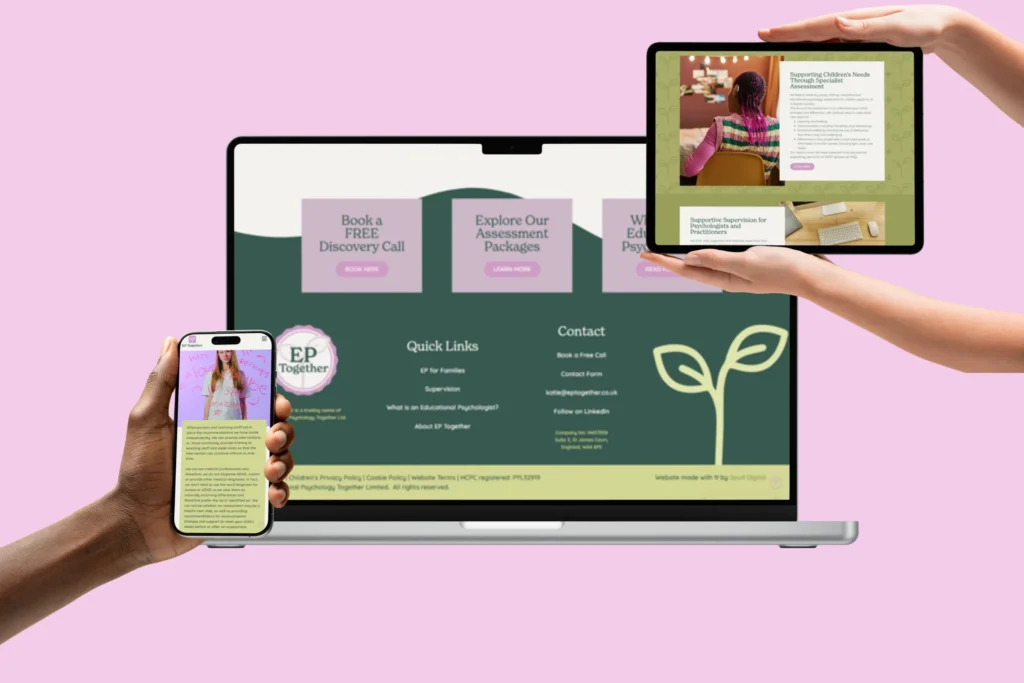 Katie started her business as she wanted to spend more time doing what she loved – suprisinly this was not admin. She also wanted to move away from agency work and get clients directly. Her new website reduces admin time by pre-qualifying leads – and alongside her branding showcases her with authority, compassion, and expertise.